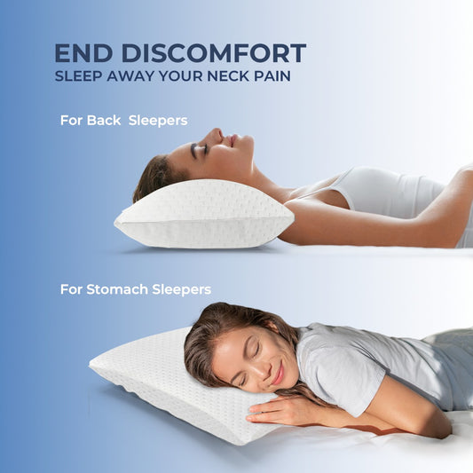 • Ergonomic Support: Our pillows are ergonomically designed to promote proper spinal alignment, reducing neck pain and muscle stiffness for better sleep.